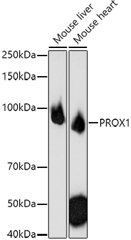 Western blot analysis of extracts of various cell lines, using PROX1 antibody at 1:1000 dilution.