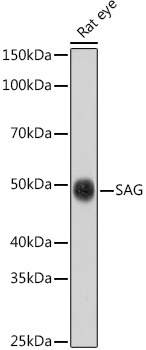 Western blot analysis of extracts of Mouse eye cells, using SAG antibody at 1:1000 dilution.