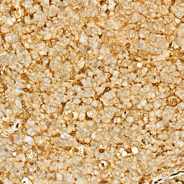 Immunohistochemistry of paraffin-embedded Human tonsil using Annexin A5/Annexin V antibody at dilution of 1:50 .Perform high pressure antigen retrieval with 10 mM citrate buffer pH 6.0 before commencing with IHC staining protocol.