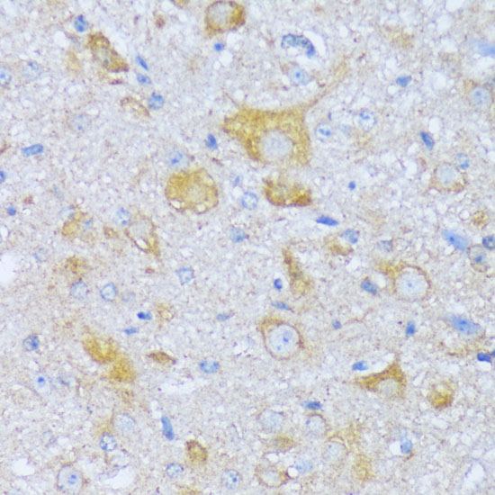 Immunohistochemistry of paraffin-embedded rat brain using ACADSB antibody at dilution of 1:100 .Perform microwave antigen retrieval with 10 mM PBS buffer pH 7.2 before commencing with IHC staining protocol.