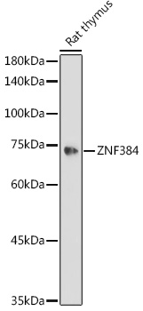 Western blot analysis of extracts of HeLa cells, using ZNF384 antibody at 1:1000 dilution.