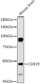 Western blot analysis of extracts of DU145 cells, using CDK19 antibody at 1:1000 dilution.