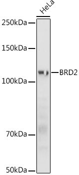 Western blot analysis of extracts of mouse brian, using BRD2 antibody at 1:1000 dilution.