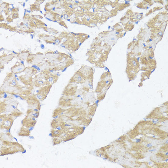 Immunohistochemistry of paraffin-embedded mouse heart using ASMT antibody at dilution of 1:100 .Perform microwave antigen retrieval with 10 mM PBS buffer pH 7.2 before commencing with IHC staining protocol.