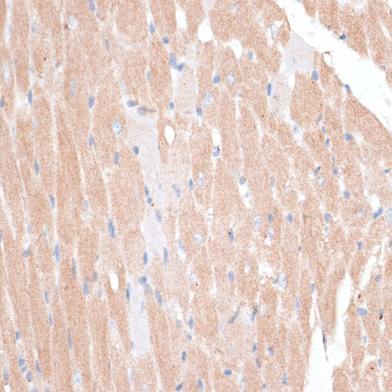 Immunohistochemistry of paraffin-embedded mouse heart using KATNA1 antibody at dilution of 1:100 .Perform microwave antigen retrieval with 10 mM PBS buffer pH 7.2 before commencing with IHC staining protocol.