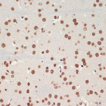 Immunohistochemistry of paraffin-embedded mouse brain using TDP-43/TARDB antibody at dilution of 1:200 .Perform microwave antigen retrieval with 10 mM PBS buffer pH 7.2 before commencing with IHC staining protocol.