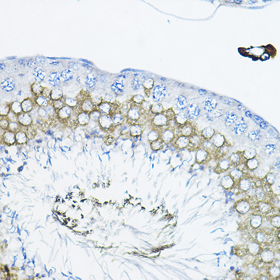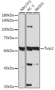 Western blot analysis of extracts of Rat testis, using Tulp2 antibody at 1:1000 dilution.