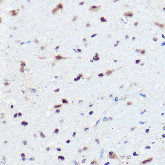 Immunohistochemistry of paraffin-embedded Mouse brain using AHNAK antibody at dilution of 1:50 .1.Perform high pressure antigen retrieval with 10 mM citrate buffer pH 6.0 before commencing with IHC staining protocol.