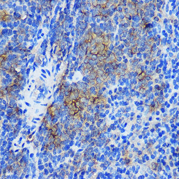 Immunohistochemistry of paraffin-embedded Mouse spleen using STAT4 Rabbit pAb at dilution of 1:100 .Perform microwave antigen retrieval with 10 mM PBS buffer pH 7.2 before commencing with IHC staining protocol.