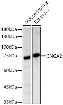 Western blot analysis of various lysates, using CNGA2 antibody at 1:400 dilution.