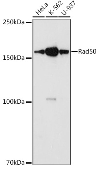 Western blot analysis of extracts of various cell lines, using Rad50 antibody at 1:1000 dilution.