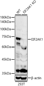 Western blot analysis of various lysates, using EIF2AK1 Rabbit pAb antibody at 1:1000 dilution.