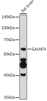 Western blot analysis of extracts of HeLa cells, using GALNT4 antibody at 1:1000 dilution.