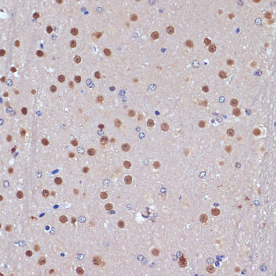 Immunohistochemistry of paraffin-embedded mouse brain using TP53BP2 antibody at dilution of 1:100 .Perform microwave antigen retrieval with 10 mM PBS buffer pH 7.2 before commencing with IHC staining protocol.