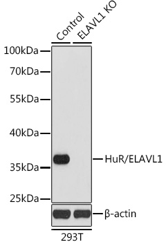 Western blot analysis of extracts of various cell lines, using HuR/ELAVL1 antibody at 1:1000 dilution.