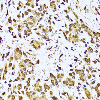 Western blot analysis of extracts of various cell lines, using Ku70 antibody at 1:1000 dilution.