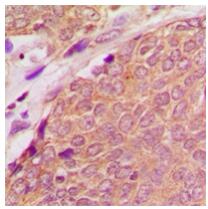 Immunohistochemistry of paraffin-embedded human uterine cancer using HMGCR antibody at dilution of 1:200 .Perform microwave antigen retrieval with 10 mM PBS buffer pH 7.2 before commencing with IHC staining protocol.
