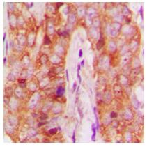 Immunohistochemical analysis of MMP13 staining in human breast cancer formalin fixed paraffin embedded tissue section.