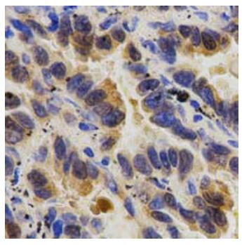 Immunohistochemical analysis of Caspase 9 p37 staining in human lung cancer formalin fixed paraffin embedded tissue section.