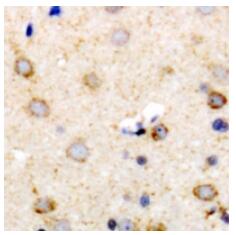 Immunohistochemical analysis of CD63 staining in human brain formalin fixed paraffin embedded tissue section.