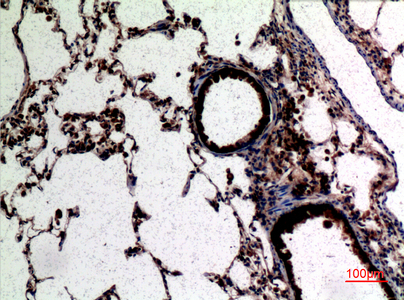 Immunohistochemistry analysis of paraffin-embedded rat lung using CD62L antibody.High-pressure and temperature Sodium Citrate pH 6.0 was used for antigen retrieval.