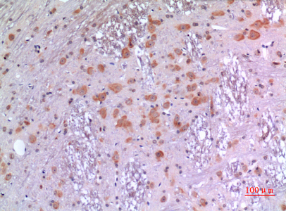 Immunohistochemistry analysis of paraffin-embedded rat brain using BMP8A antibody.High-pressure and temperature Sodium Citrate pH 6.0 was used for antigen retrieval.