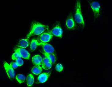 Immunofluorescence analysis of Phospho-TGF beta Receptor I in HepG2 cells using Phospho-TGF beta Receptor I antibody.