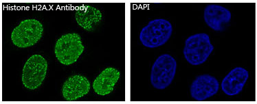 Immunofluorescence analysis of Histone H2A.X in Hela using Histone H2A.X antibody.