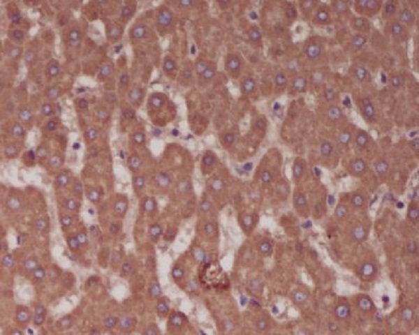 Immunohistochemistry analysis of paraffin-embedded Human liver using Alkaline Phosphatase antibody.High-pressure and temperature Sodium Citrate pH 6.0 was used for antigen retrieval.