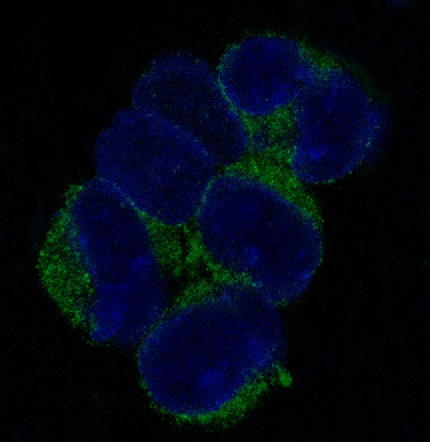 Immunofluorescence analysis of VCAM1 in K562 using VCAM1 antibody.