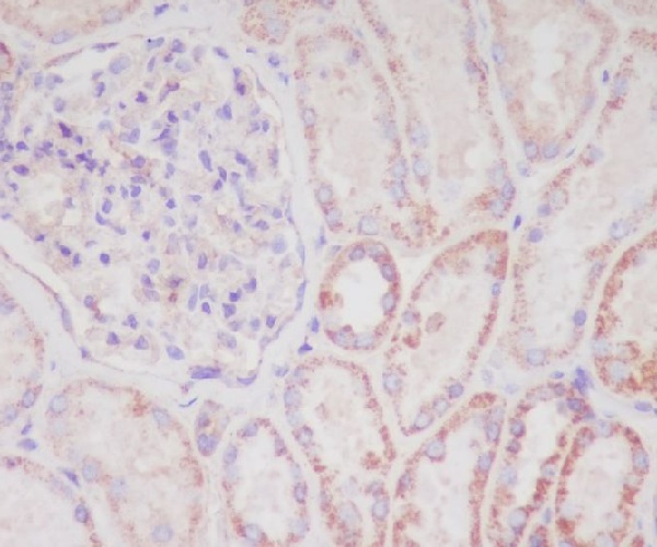 Immunohistochemistry analysis of paraffin-embedded Human kidney using Smac/Diablo antibody.High-pressure and temperature Sodium Citrate pH 6.0 was used for antigen retrieval.