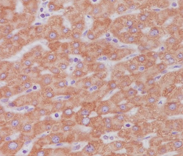 Immunohistochemistry analysis of paraffin-embedded Human liver using Cytochrome C antibody.High-pressure and temperature Sodium Citrate pH 6.0 was used for antigen retrieval.