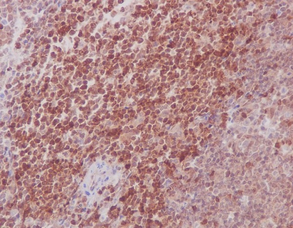 Immunohistochemistry analysis of paraffin-embedded mouse spleen using MEK3/MEK6 antibody.High-pressure and temperature Sodium Citrate pH 6.0 was used for antigen retrieval.