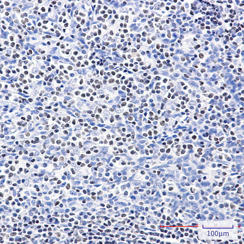 Immunohistochemistry analysis of paraffin-embedded Human tonsil using IKZF3 antibody.High-pressure and temperature Sodium Citrate pH 6.0 was used for antigen retrieval.