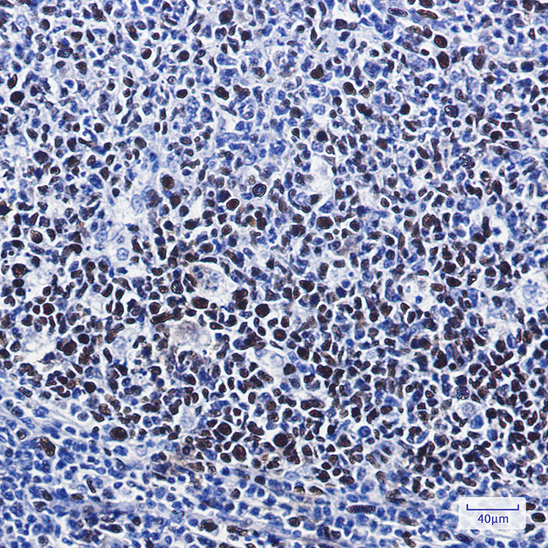 Immunohistochemistry analysis of paraffin-embedded Human tonsil using MCM2 antibody.High-pressure and temperature Sodium Citrate pH 6.0 was used for antigen retrieval.