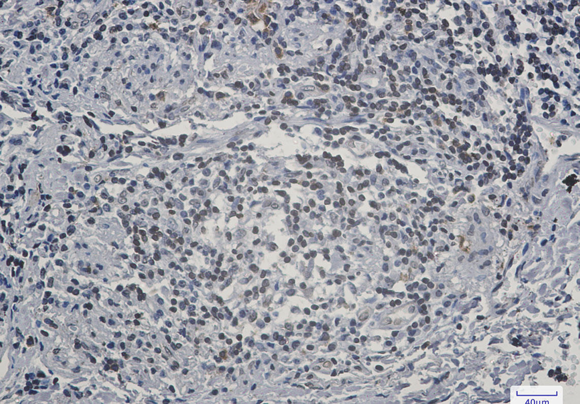Immunohistochemistry analysis of paraffin-embedded Human lung cancer using Lamin B Receptor antibody.High-pressure and temperature Sodium Citrate pH 6.0 was used for antigen retrieval.