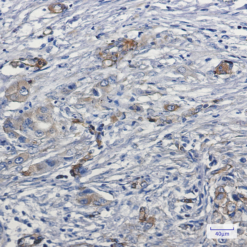Immunohistochemistry analysis of paraffin-embedded Human lung cancer using MYO1B antibody.High-pressure and temperature Sodium Citrate pH 6.0 was used for antigen retrieval.