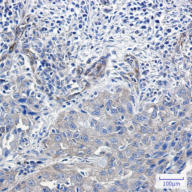 Immunohistochemistry analysis of paraffin-embedded Human lung cancer using NUMB antibody.High-pressure and temperature Sodium Citrate pH 6.0 was used for antigen retrieval.