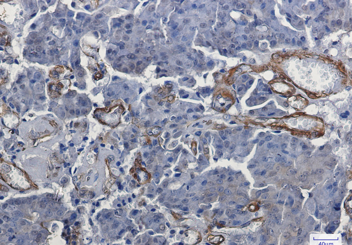Immunohistochemistry analysis of paraffin-embedded Human breast cancer using Vinculin antibody.High-pressure and temperature Sodium Citrate pH 6.0 was used for antigen retrieval.