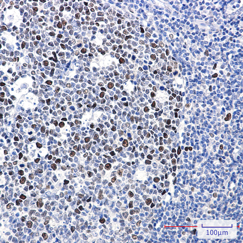 Immunohistochemistry analysis of paraffin-embedded Human tonsil using MCM2 antibody.High-pressure and temperature Sodium Citrate pH 6.0 was used for antigen retrieval.