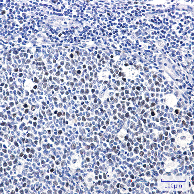 Immunohistochemistry analysis of paraffin-embedded Human tonsil using Rb antibody.High-pressure and temperature Sodium Citrate pH 6.0 was used for antigen retrieval.