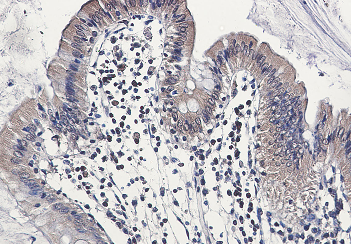 Immunohistochemistry analysis of paraffin-embedded Human colon cancer using Caspase6 antibody.High-pressure and temperature Sodium Citrate pH 6.0 was used for antigen retrieval.