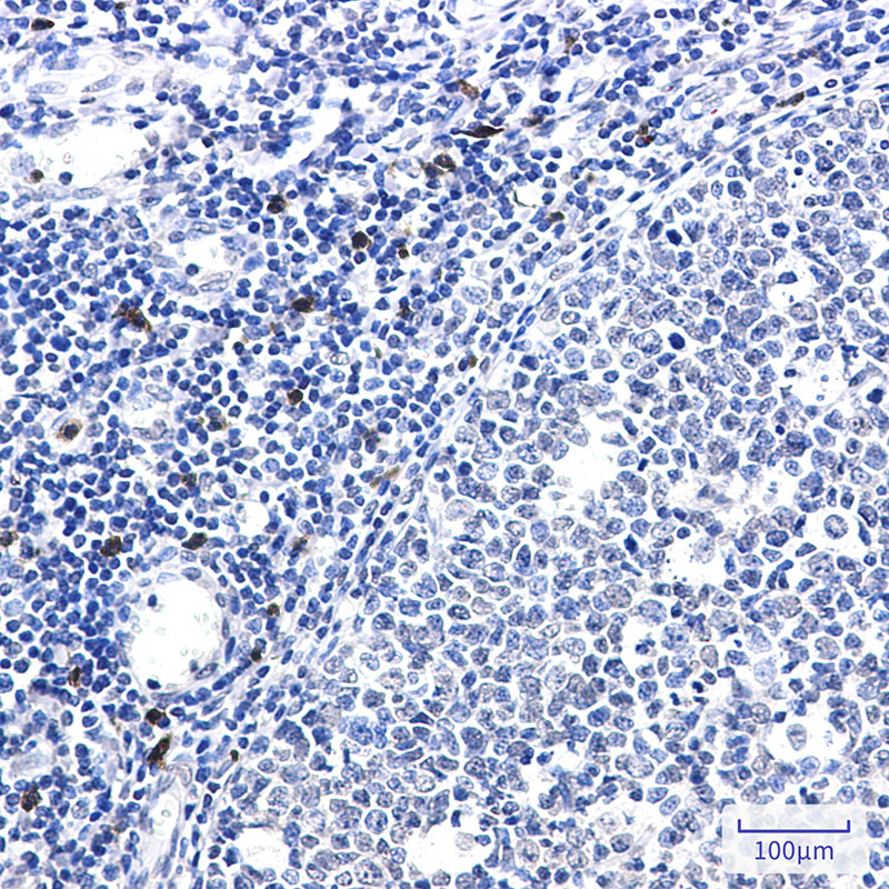 Immunohistochemistry analysis of paraffin-embedded Human tonsil using IL-26 antibody.High-pressure and temperature Sodium Citrate pH 6.0 was used for antigen retrieval.