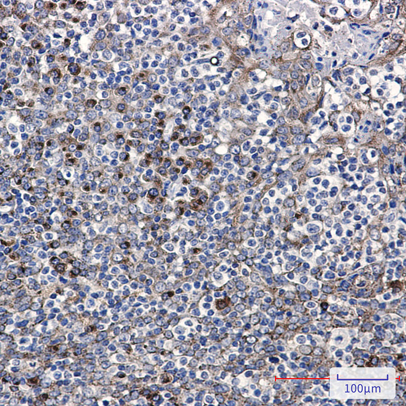 Immunohistochemistry analysis of paraffin-embedded Human tonsil using LMAN1 antibody.High-pressure and temperature Sodium Citrate pH 6.0 was used for antigen retrieval.