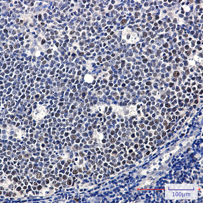 Immunohistochemistry analysis of paraffin-embedded Human tonsil using MCM2 antibody.High-pressure and temperature Sodium Citrate pH 6.0 was used for antigen retrieval.