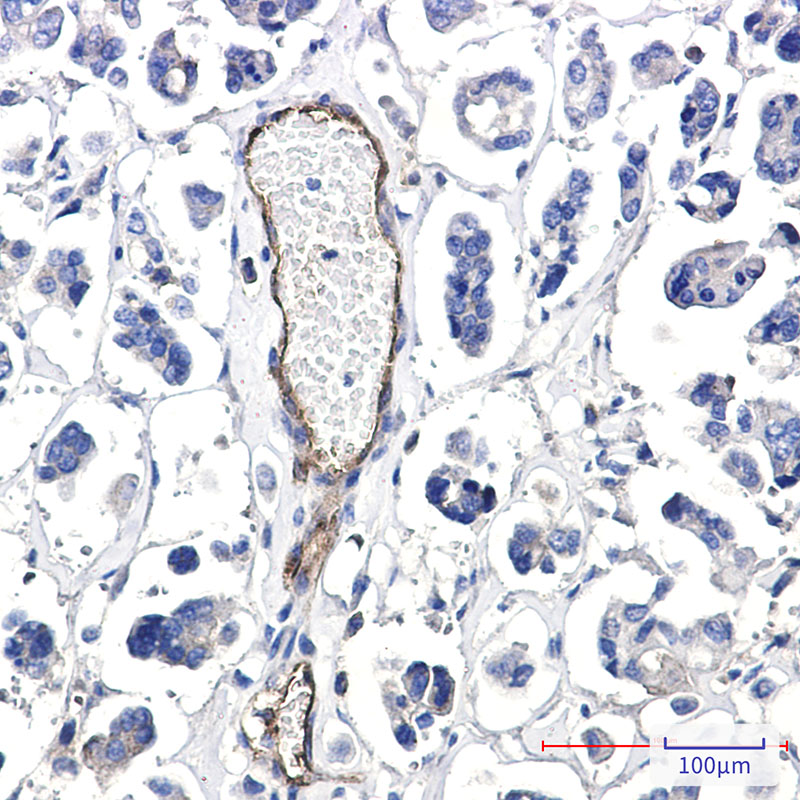 Immunohistochemistry analysis of paraffin-embedded Human Cholangiocarcinoma using Poliovirus Receptor/PVR antibody.High-pressure and temperature Sodium Citrate pH 6.0 was used for antigen retrieval.