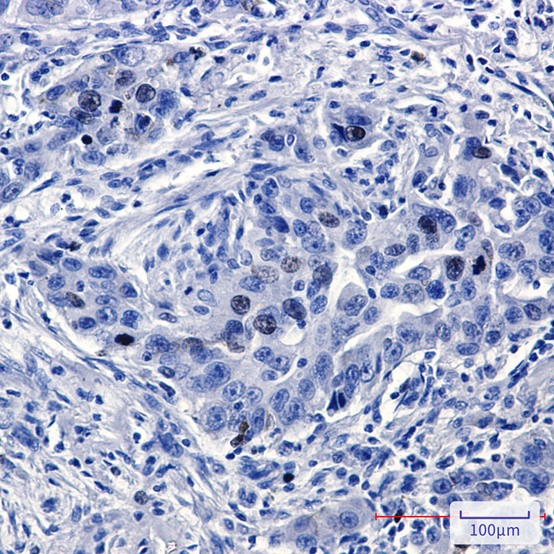 Immunohistochemistry analysis of paraffin-embedded Human lung cancer using TPX2 antibody.High-pressure and temperature Sodium Citrate pH 6.0 was used for antigen retrieval.