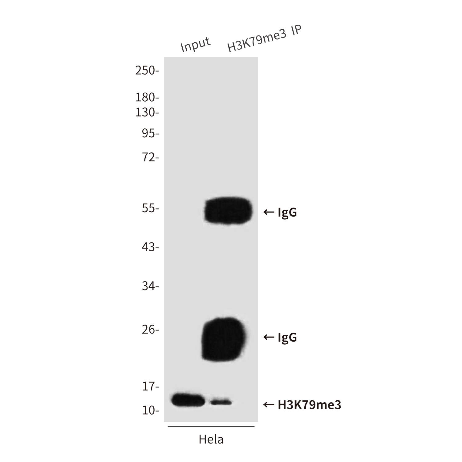 Immunoprecipitation analysis of TriMethyl-Histone H3 in Hela lysates using TriMethyl-Histone H3 antibody