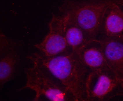 Immunofluorescence analysis of methanol-fixed MCF-7 cells using Phospho-ESRα-S118 antibody .