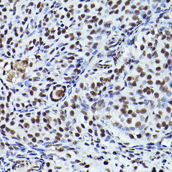 Western blot analysis of extracts of HeLa cells, using Phospho-ATR-T1989 antibody at 1:1000 dilution.HeLa cells were treated by Hydroxyurea at 37℃ for 20 hours.